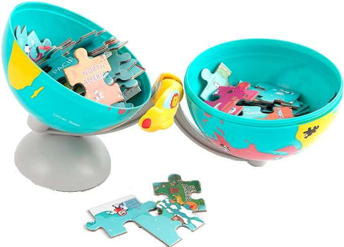 - Zawartość zestawu: 64-elementowe puzzle + pojemnik w kształcie globusa